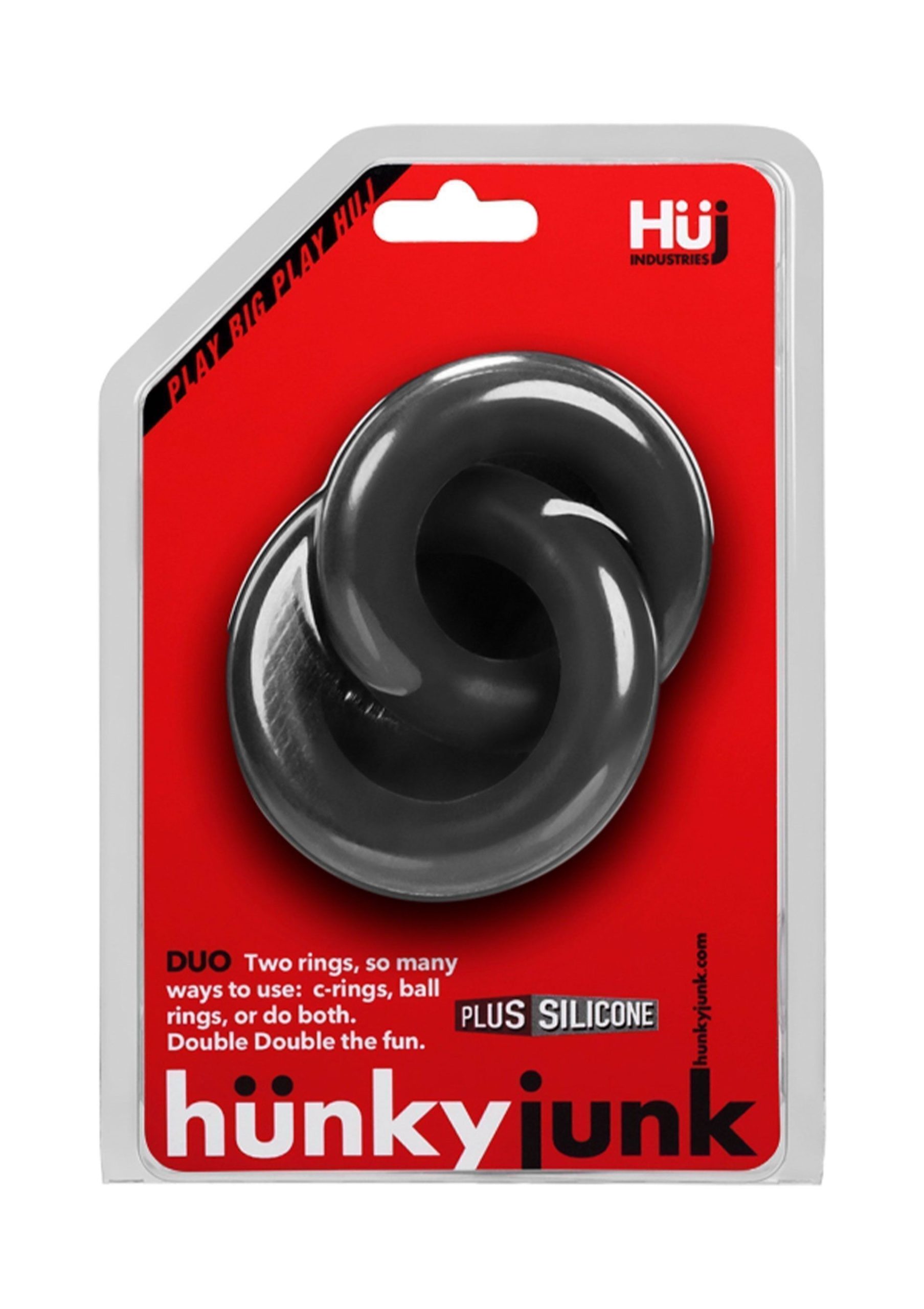 Gli anelli DUO sono un originale hünkyjunk – abbiamo creato un set di anelli intrecciati in stile catena progettati per avvolgere il tuo pene / scroto! Questi anelli in miscela di silicone super gommoso sono lisci e morbidi se usati come un doppio anello a C senza essere troppo stretti. ogni anello ha una dimensione diversa, puoi allungarlo e adattarlo in tanti modi. Il plus + silicone TPR / miscela di silicone è morbido e caldo … vellutato come il silicone + forte ed elastico come il TPR. Anello 1: Circonferenza esterna: 17 cm – Circonferenza interna: 9,5 cm | Anello 2: Circonferenza esterna: 19 cm – Circonferenza interna: 11,4 cm